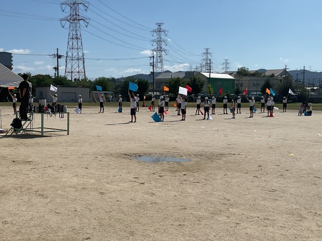 6年生が運動場でダンスの練習をしています。いよいよ来週の土曜日が運動会ですが、6年生は最後の運動会。着々と出来上がってきていますね。