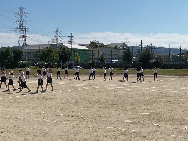 2年生のダンスもいよいよ仕上げにかかっています。今日の練習は、運動場に大きく広がって、うまく踊れていました。当日は、決めポーズもバッチリ決めて、カッコいい姿をみなさんにみていただきます。