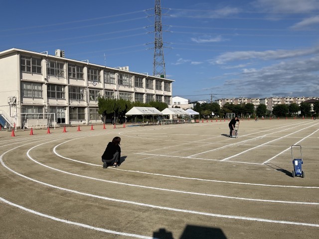 10月24日(金)明日は運動会 その2 公開日 2025/10/24 更新日 2025/10/24 学校の様子 5時間目の後、先生たちが明日の運動会の準備をしました。トラックの白線やコーンを設置して、運動会がスムースに進行するように準備をしました。みんなで楽しい運動会にしたいですね。 いいね(0)