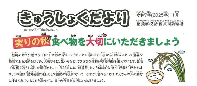 きゅうしょくだより11月号をアップしました。こちらからご覧になれます。