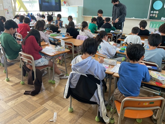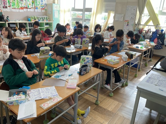3年生が、理科の乾電池の実験に使うためのキットを作っています。まずは銅線を剥いていくところから。うまく出来たでしょうか。