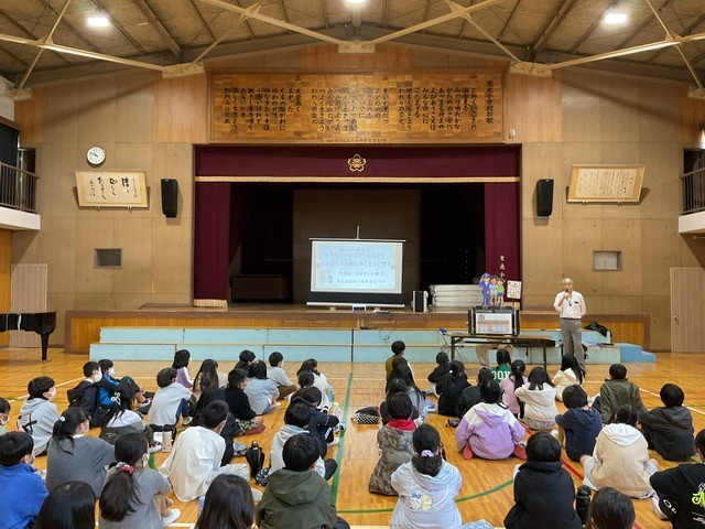 枚方少年サポートセンターの職員の方をお招きし、非行防止教室を開催しました。「万引きはイタズラではなく、『犯罪である』こと」や「見張り役も『犯罪になる』」など、人形劇や子どもたちとの言葉のキャッチボールを通じ、真剣に向き合ってくださいました。お忙しい中、子どもたちのためにご指導いただき、ありがとうございました。