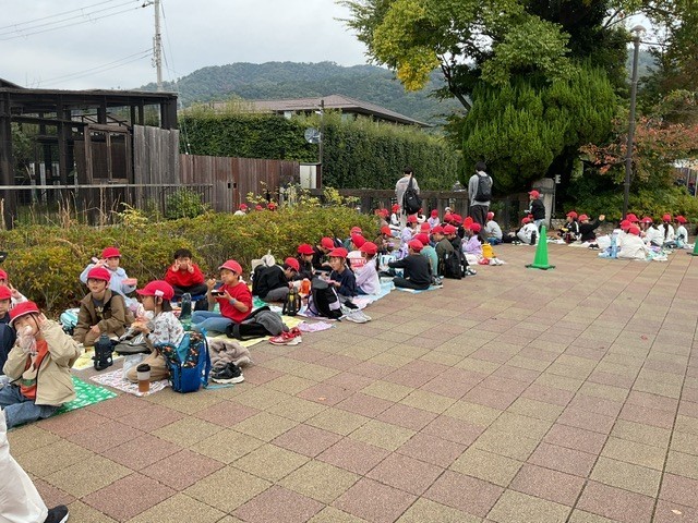班活動が終わり、お楽しみのお弁当タイムです。みんなニコニコです。