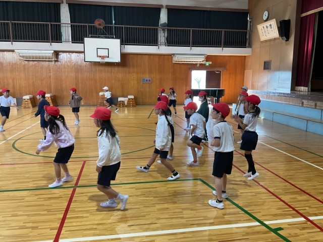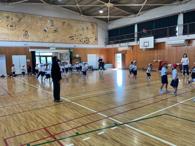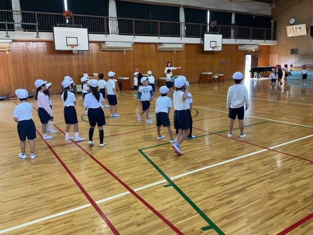 1年生は体育館で2クラス合同ドッジボールをしています。大歓声が体育館中に響いています。