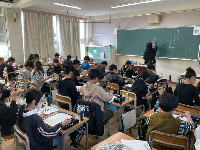 子どもたちは書写の時間、「希望」を毛筆で書きました。校長先生より、中心線を意識することや「望」の「月」を少し倒して書くなど、大切なポイントの説明があり、それを意識して書き上げていました。