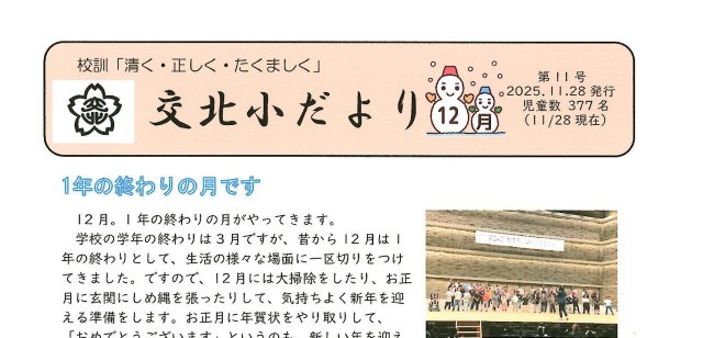交北小だより12月号をアップしました。こちらからご覧になれます。
