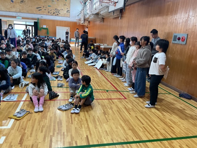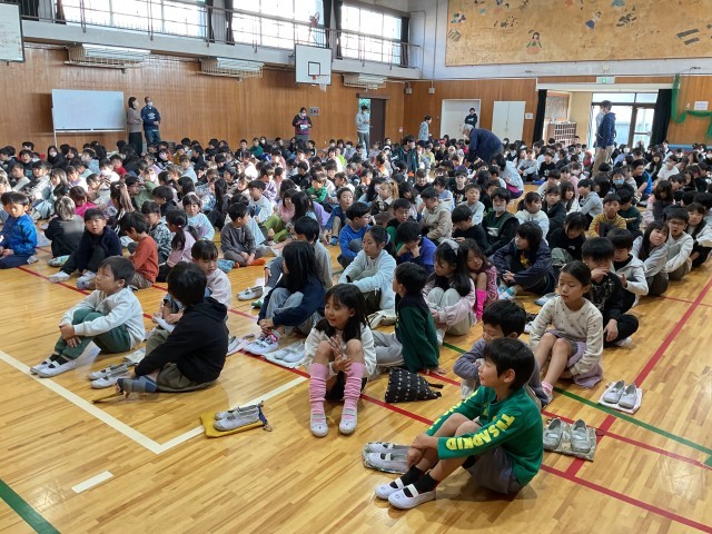 12月の児童集会を行いました。校長からはインフルエンザなどの感染症予防に改めて手洗い、うがいをすることについて、生徒指導担当からは、安全に注意し遅くまで外で遊ばないことのお話をしました。放送委員会の人たちが、「放送ジャンケン」をリアルに体育館いっぱいの全校児童で行ってみんなで楽しみました。今日の担当は4年生の代表委員さんたち、しっかり司会をして、12月の目標も発表してくれました。
