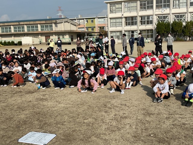 2時間目には、地震を想定した避難訓練を行いました。みんな頭を守りながら運動場に避難できました。「おはしも」を守って、もしもの時にもしっかり行動できそうですね、