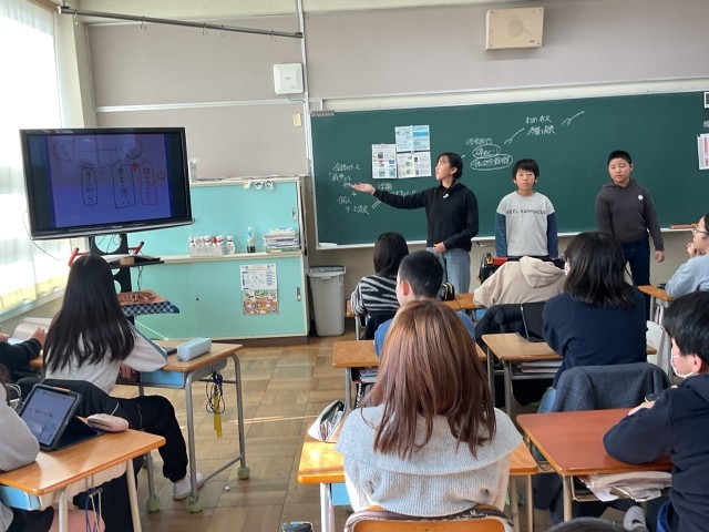 6年生では、1学期から平和をテーマに総合的な学習を続けてきました。修学旅行なども踏まえ、先日の授業参観の際に保護者の方に見ていただいたのですが、その発表についてのアンケートを分析し、改善点をプレゼンする発表を行いました。みんなよく考えて、まとめられていましたね。