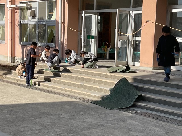 午後は大掃除。2学期に溜まった汚れや埃をきれいにして、新年、新学期を迎えます。みんな一生懸命にきれいにしました。