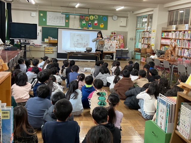今日の3時間目は、枚方市の旧田中家鋳物民俗資料館の方に来ていただき、昔の人の暮らしの道具についてお話をしていただきました。ご飯を炊く羽釜や、それを入れるお櫃、飯かごなど、現在では使われなくなった道具をたくさん持ってきてくださり、説明をして下さいました。子どもたちもみたことのない道具の数々に興味深く見入っていました。