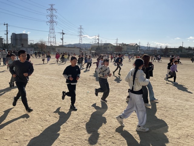 昨日から始まった「マラソン週間」。今日も20分休みの7分間、全校児童で運動場を走りました。今日は、とびきり寒い朝でしたが、みんな元気いっぱい、しっかり走りました。
