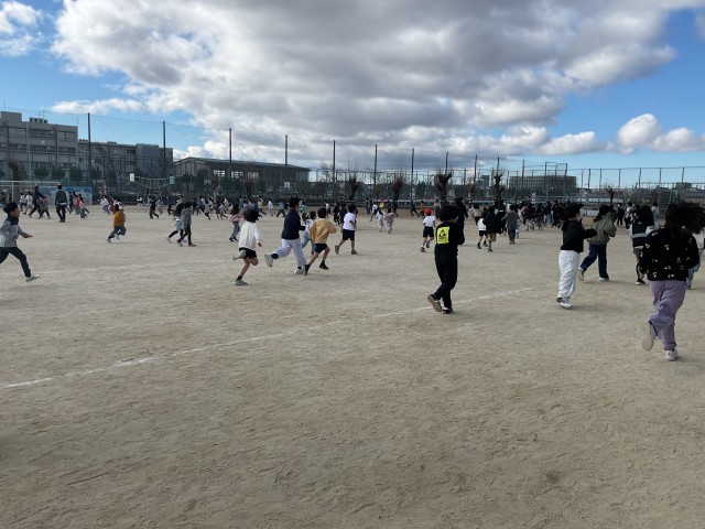今日も寒い1日でしたが、交北小学校の子どもたちのマラソン週間は続きます。寒空の中、がんばって7分間走りました。走ると体が暖かくなりますね。