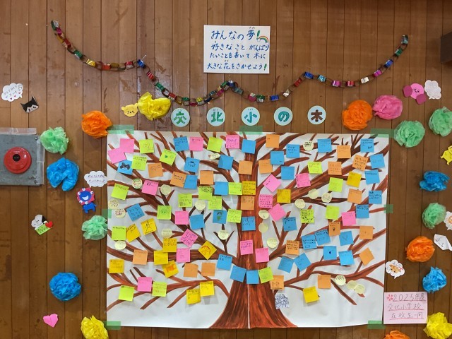 PTAからは、輪投げを出してもらいました。また、交北の木にみんなで将来の夢などを貼っていきました。