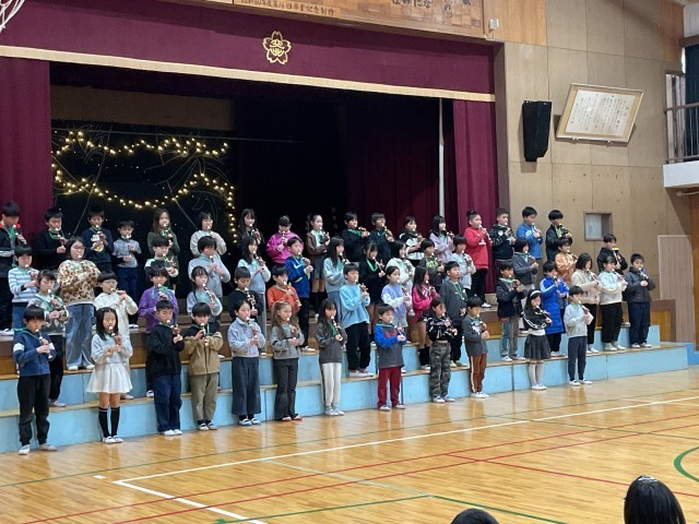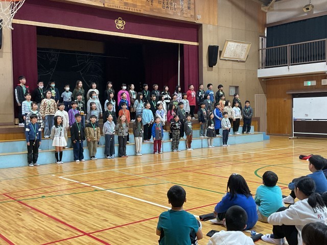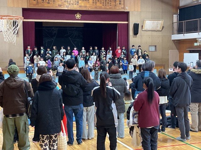 まずは3年生のオペレッタ「もちもちの木」の発表です。大きなきれいな声で歌えていました。セリフもよく聞こえたし、リコーダーも上手でしたね。保護者の方にもたくさん来ていただいて、大きな拍手をいただきました。
