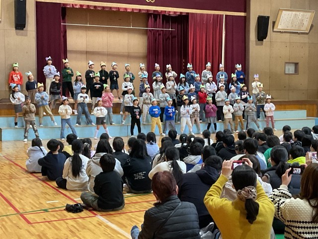 2月19日(木)学習参観 1年 公開日 2026/02/20 更新日 2026/02/20 1年生 次に発表は1年生の「11匹のネコ」。たくさんの歌やふりをしっかり覚えて楽しい発表ができました。ネコのフリがとっても可愛かったです。歌も大きな声で歌えていましたね。 いいね(0)