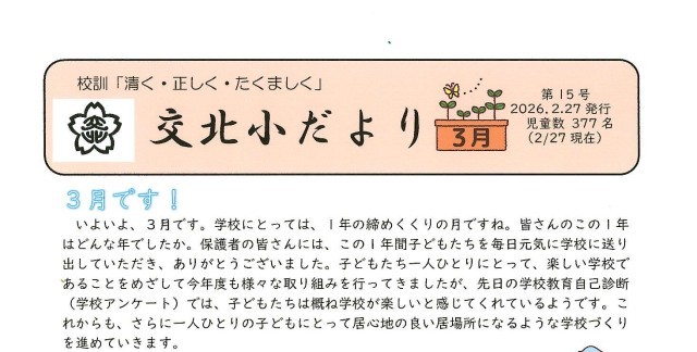 交北小だより3月号をアップしました。