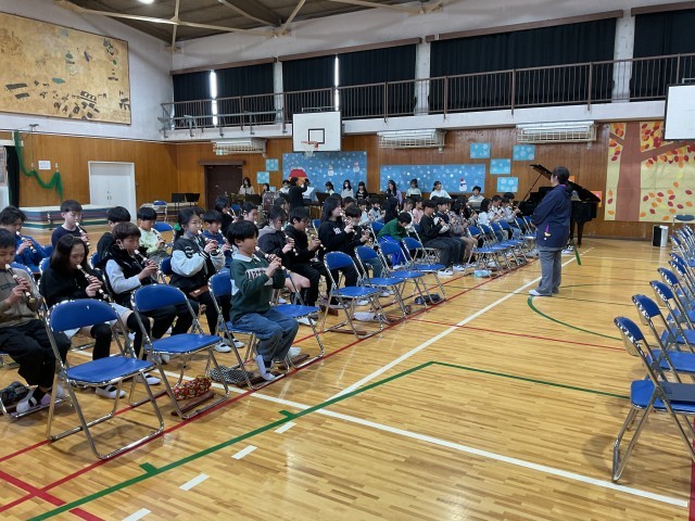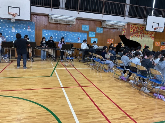 体育館から綺麗な合奏の音色が聞こえてきます5年生が卒業式に向けて、入場や退場の音楽を練習しているのです。