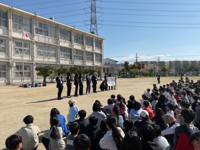 校長からは、「交北小の合言葉を大切に、各学年やクラスの目標があります。先生たちの話をよく聞き、自分がどう行動すれば、学年やクラスの目標が達成できるか考えましょう。1年生から6年生の全員と、先生たち全員で、交北小を素敵な学校にしていきましょう!」と伝えました。