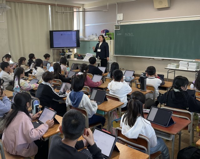各学級において、年度当初は、学年目標の話やタブレットの使い方の話等、先生の話を聞く場面が多いです。