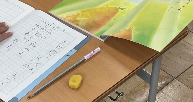 隣のクラスに行くと、国語「たけのこ ぐん」(ぶしか えつこ)を試写していました。こちらも、しっかり丁寧に書いていました。「たけのこ ぐん」暗唱できるでしょうか?