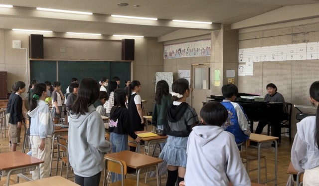 どのクラスにおいても、書くときの姿勢や、歌うときの姿勢についての指導がありました。