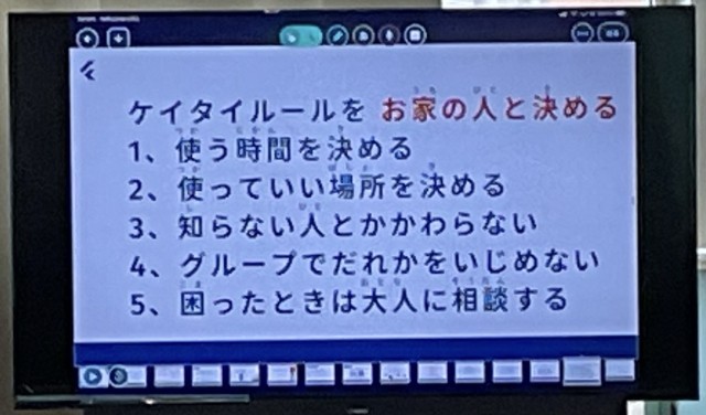 今日は、ICT支援員さんによる授業がありました。「SNSやゲーム等の使用ルールをおうちで決めよう」「スマホ脳にならないために」等の話を聞きました。