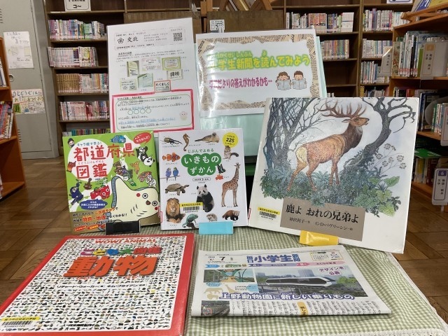 このクイズにちなんで、司書教諭の先生と図書館司書さんが、図書室に特別コーナーを作ってくれました。