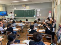 10月13日(木)2時間目、2年生のあるクラスでは、せいかつ科で、二十日だいこんの生長を観察していました。
