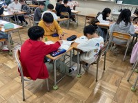 4年生は、先日市役所の方に来ていただき、パッカー車の体験などを通してごみのリサイクルについて学びましたが、今日の授業は、改めてその復習をしながら、リサイクルされたゴミがどのようなものに変わっていくのか、学習を深めています。