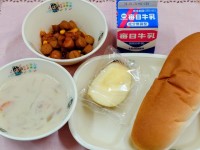 <今日のメニュー>タットリタン・ビーフンの炒め物・のりかつおふりかけ・ご飯・牛乳