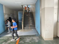 4年生がタブレットを持って、一斉に教室から出てきました。算数で学習した平行や垂直...