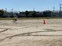 学年種目の練習を行いました。運動場に描かれたフィールドの中で本番さながらに全力で取り組みました。互いに「がんばれー」などの声をかけ合いながら、心を1つに頑張っていました。