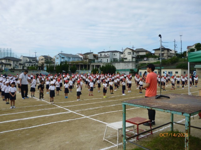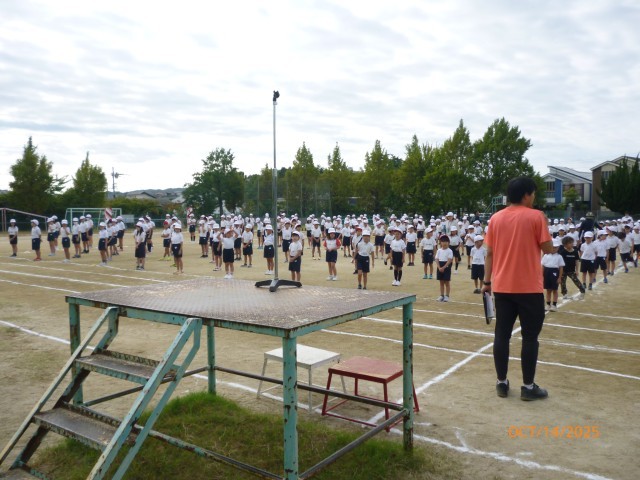 今日は、開会式と閉会式の練習が中心です。全校児童で並ぶのは初めてでしたが、列がまっすぐになるように、ひとりひとりが考えながら並んでいることが伝わってきました。てきぱきと動けたので、みんなで石拾いや草抜きをする時間がしっかり取れましたね。