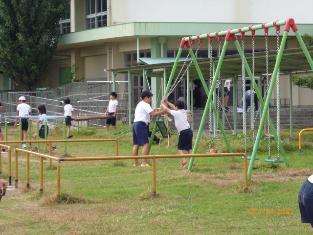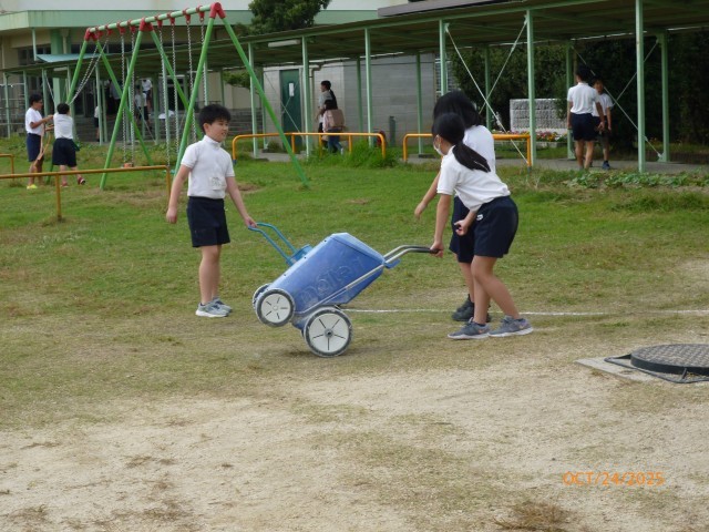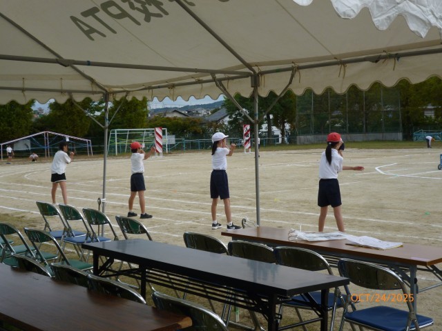 本番と同じように段取りや役割の確認をしたり、本部席の机・椅子を運んだり、ロープを張るのを手伝ったりと、進んで仕事に取り組む子どもたちの姿は、「さすが高学年! 香陽小学校を引っ張っていってくれている存在だな。」と思わされました。