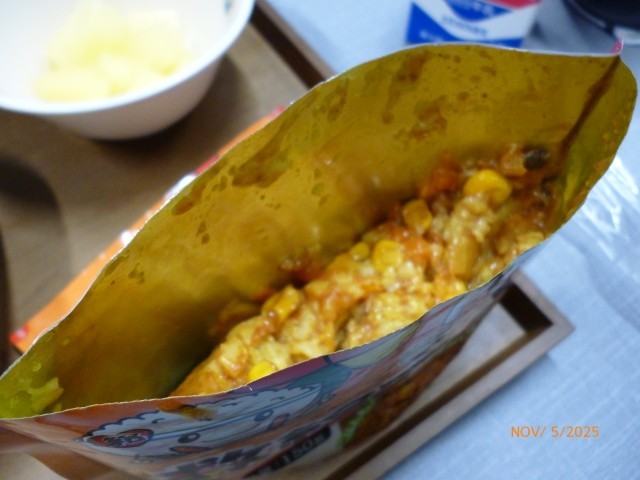 この「救給カレー、は、アレルギー特定原材料等28品目が使用されていないカレーです。パウチの中にごはんも入っていて、おいしくいただけます。「あったかい方がいいな。」という声も聞こえますが、災害時にはそんなこともいってられません。1年に一度、食からも災害時について学習しています。