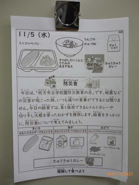 11月5日(水)枚方市立学校園「防災教育の日」 〜救給カレー〜
