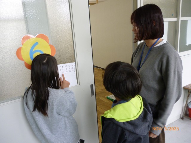 ひまわりの教室に入る前に漢字の読み取りチェックです。