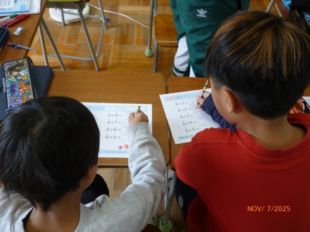 今、2年生は小学校算数科の最初の難関と言われているかけ算、九九の学習をしています。