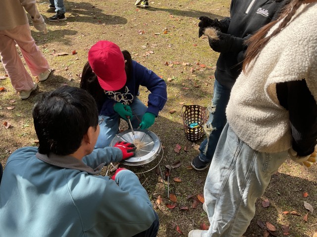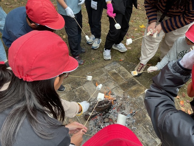 火つけ体験では、なかなか火がつかず何度もチャレンジしました。みんな無事火をつけることができ、マシュマロを美味しくいただきました。
