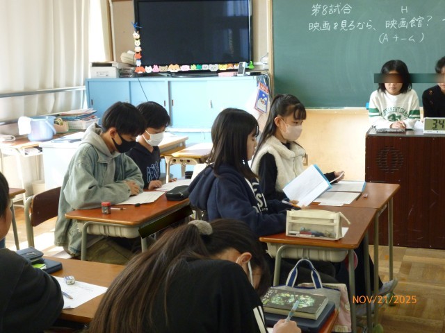 今日の議題は、「映画を見るなら、映画館? それとも自宅?」です。自分の立場を理解し整理することからスタートし、相手の立場の言い分も聞き、あらためて自分の立場を顧みて、話し合いをすすめていかなければなりません。