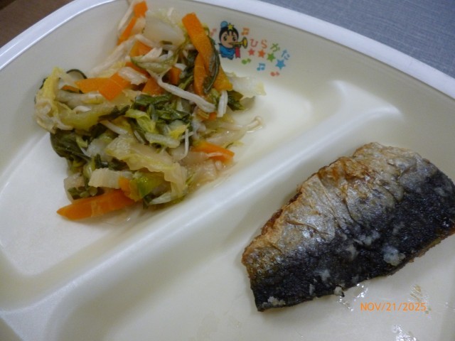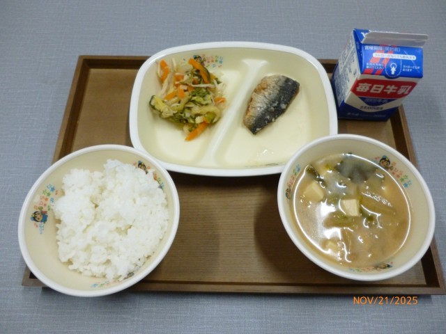ということで、本日の給食は、「ご飯・みそ汁・いわしのから揚げ・白菜のポン酢和え・牛乳」でした。