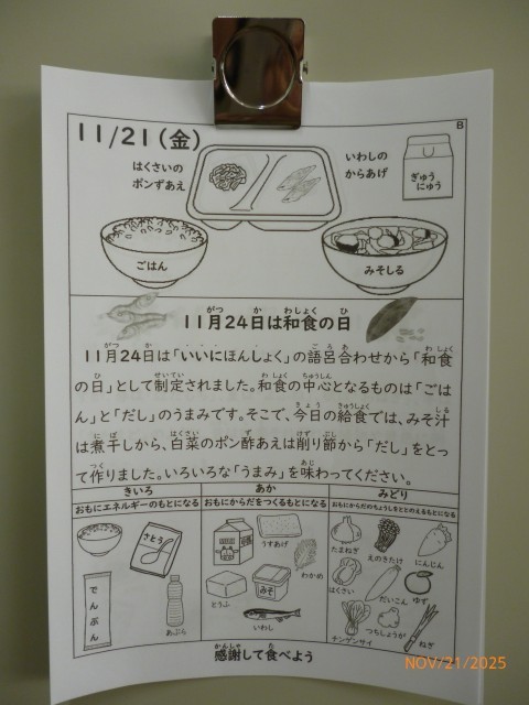 「和食の日」の語呂合わせは、正直無理があるなあ・・・と思ったのですが、おいしい和食の給食が食べられるのなら、強引な語呂合わせもなかなかいいもんですね。(笑)
