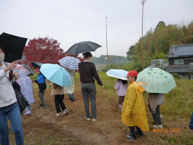 まずは、穂谷まで行き、棚田の見学です。雨が降っていましたが、みんなの住んでいる香陽小周辺とは違った土地の使われ方を見ることができました。たぬきやあらいぐまが出てきそうでしたね。