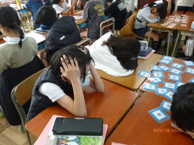 どんなことにも一生懸命取り組む5年生。何より、先生の「Close you eyes.」の声にすぐに目を閉じる姿がとてもかわいい5年生です。