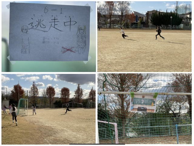 6年1組は、運動場で逃走中。「みんな、サングラスかけたかっただけちゃうん!」という校長の心の声は置いといて、低学年相手に真剣走り回っている6年生の姿には拍手!でした。6年生のお兄さん、お姉さんがマジで相手してくれるって嬉しいものなんですよね。