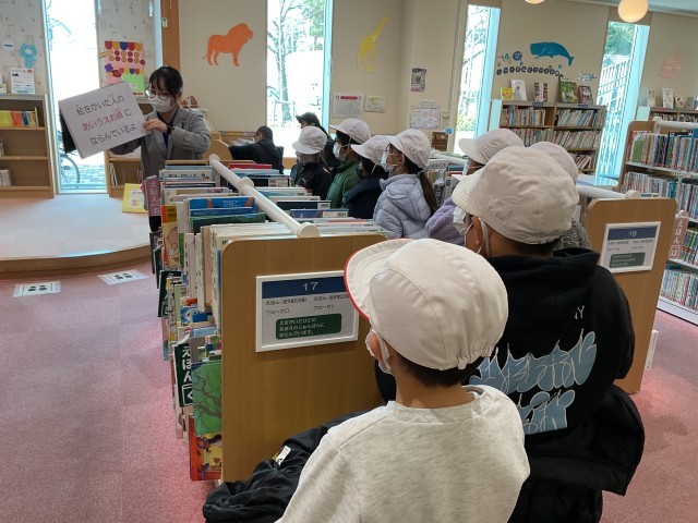 生活科で自分たちの住んでいる地域についての学習している2年生。今日は、枚方市立香里ケ丘図書館に行ってきました。