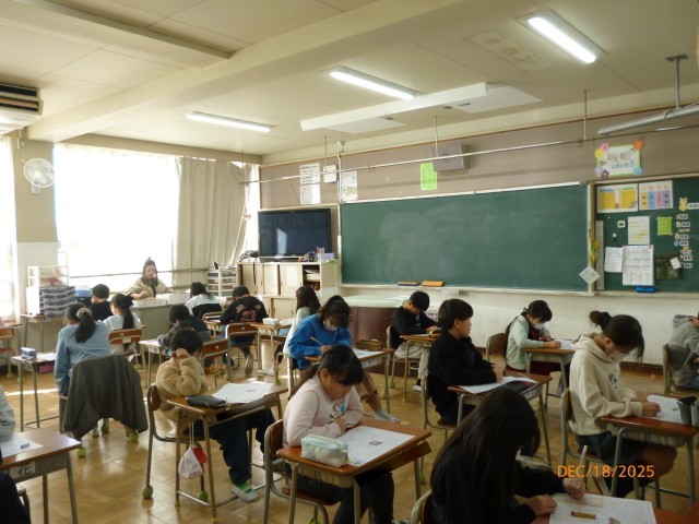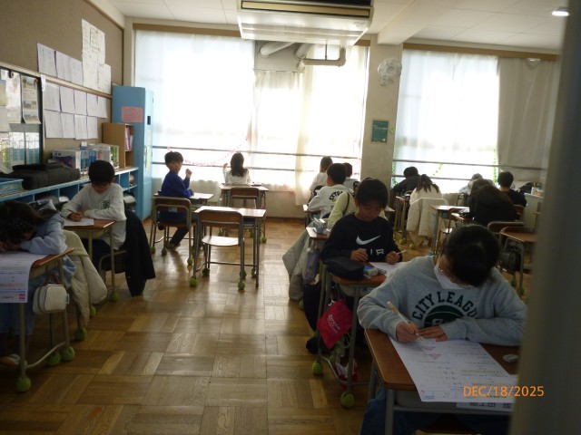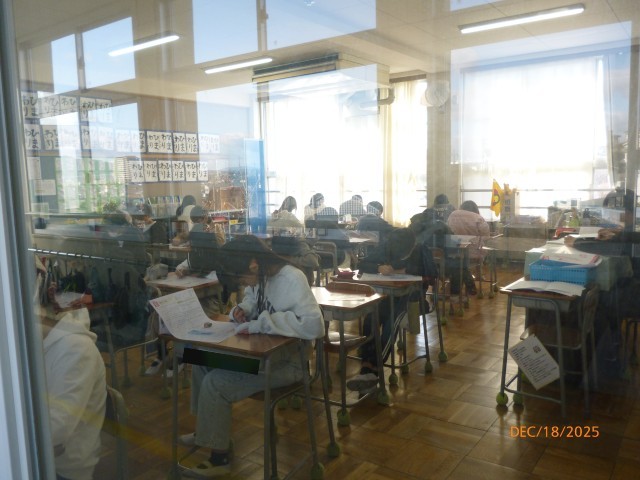 学期末になると、どこのクラスをのぞいてもテスト中のことが多いです。みんな、真剣にテストに向かっています。鉛筆の響く音だけが聞こえる教室というのもなかなかのものですよ。