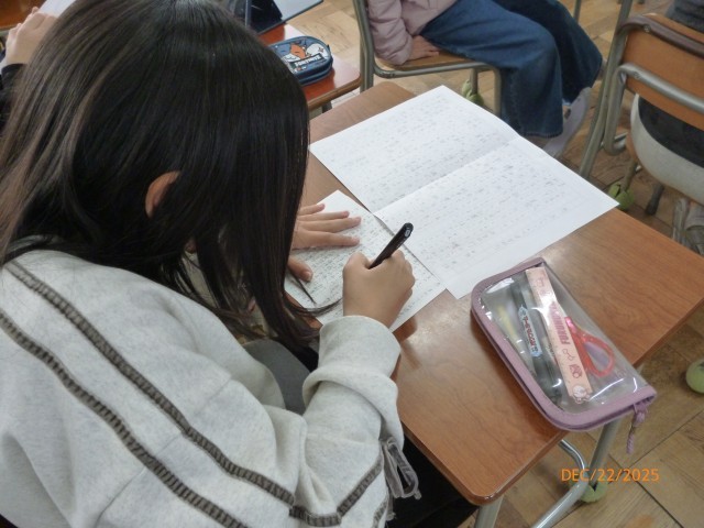 そんな中、6年生は卒業アルバム内の卒業文集を書いています。原稿用紙やロイロノートで原稿を書いてから、清書です。いつも使用している原稿用紙のマスより小さいマスの用紙に書かなければいけないのは大変・・・。しかも、絶対間違わないように! なかなかの緊張感・・・!