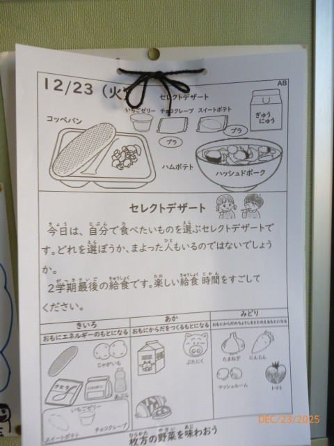 みんなの大好きなおいしい給食を次に食べられるのは、2026年の1月8日(木)です。来年もたくさん食べましょうね!